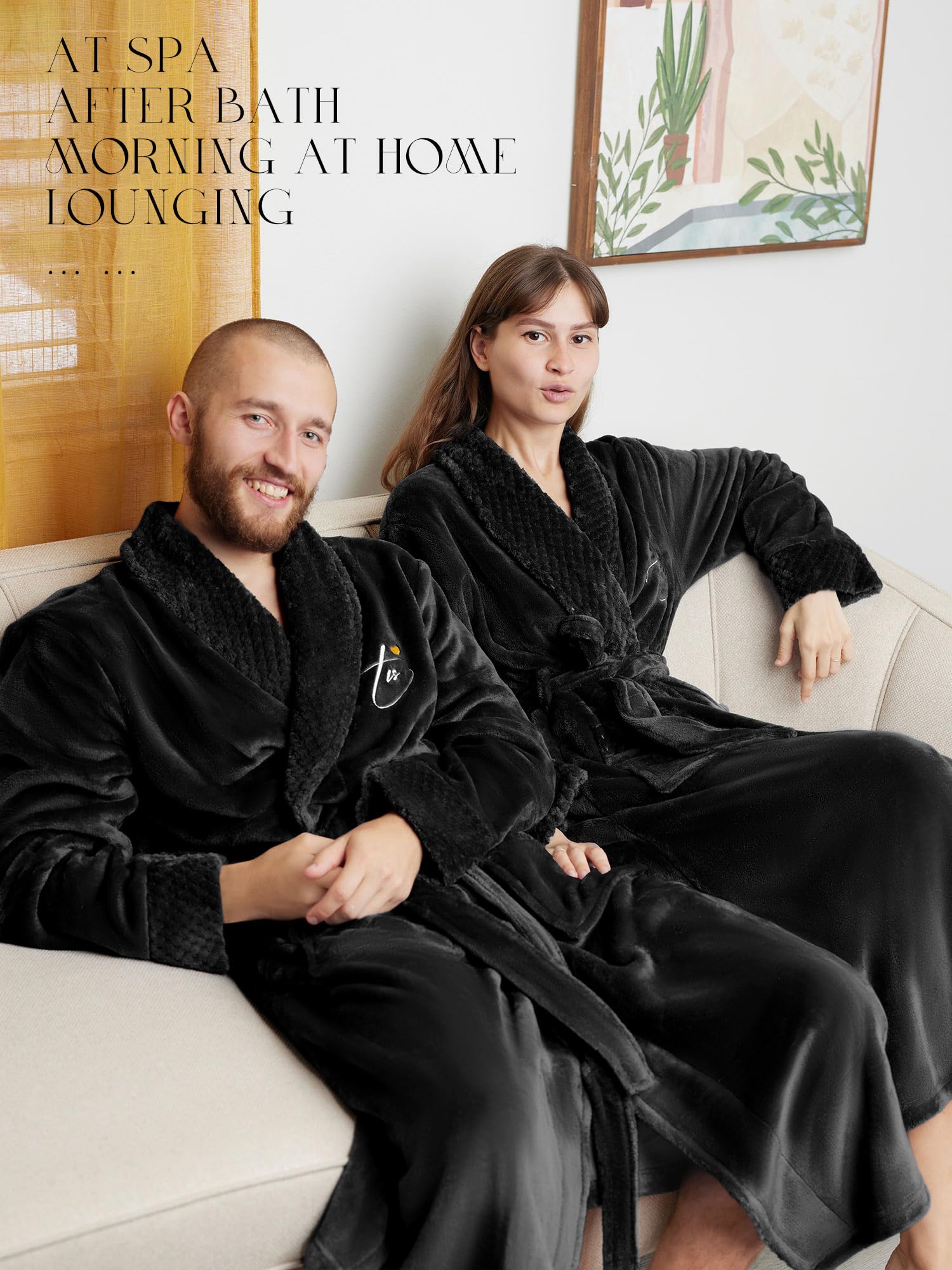 - Sets Sizing: This matching 2pcs set includes Women's and Men's robe for a perfect fit. Available in one size fits most; Women (M FITS US8-10) - Robe Length: 48"/122cm, Sleeve Length: 24"/61cm, Bust: 45.7''/116cm, Shoulder: 18.9''/48cm; Men (L FITS US12-14) - Robe Length: 51.2"/130cm, Sleeve Length: 25.1"/64cm, Bust: 52"/132cm, Shoulder: 22''/56cm; The fit is may be oversized on petite individuals