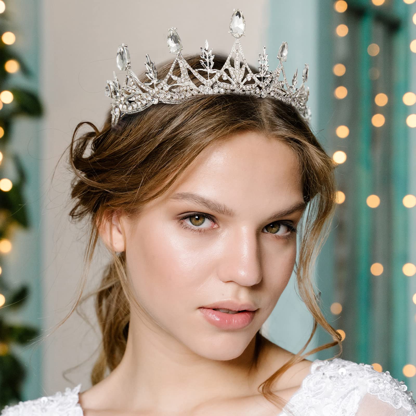 AW BRIDAL Crystal Silver Tiaras and Crowns for Women Baroque Queen Crown Wedding Tiaras for Bride Prom Quinceanera Headband